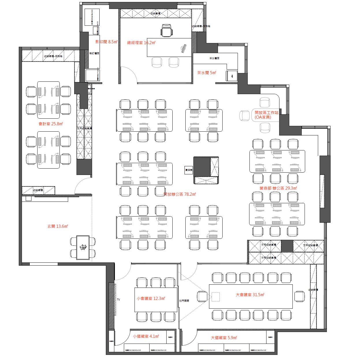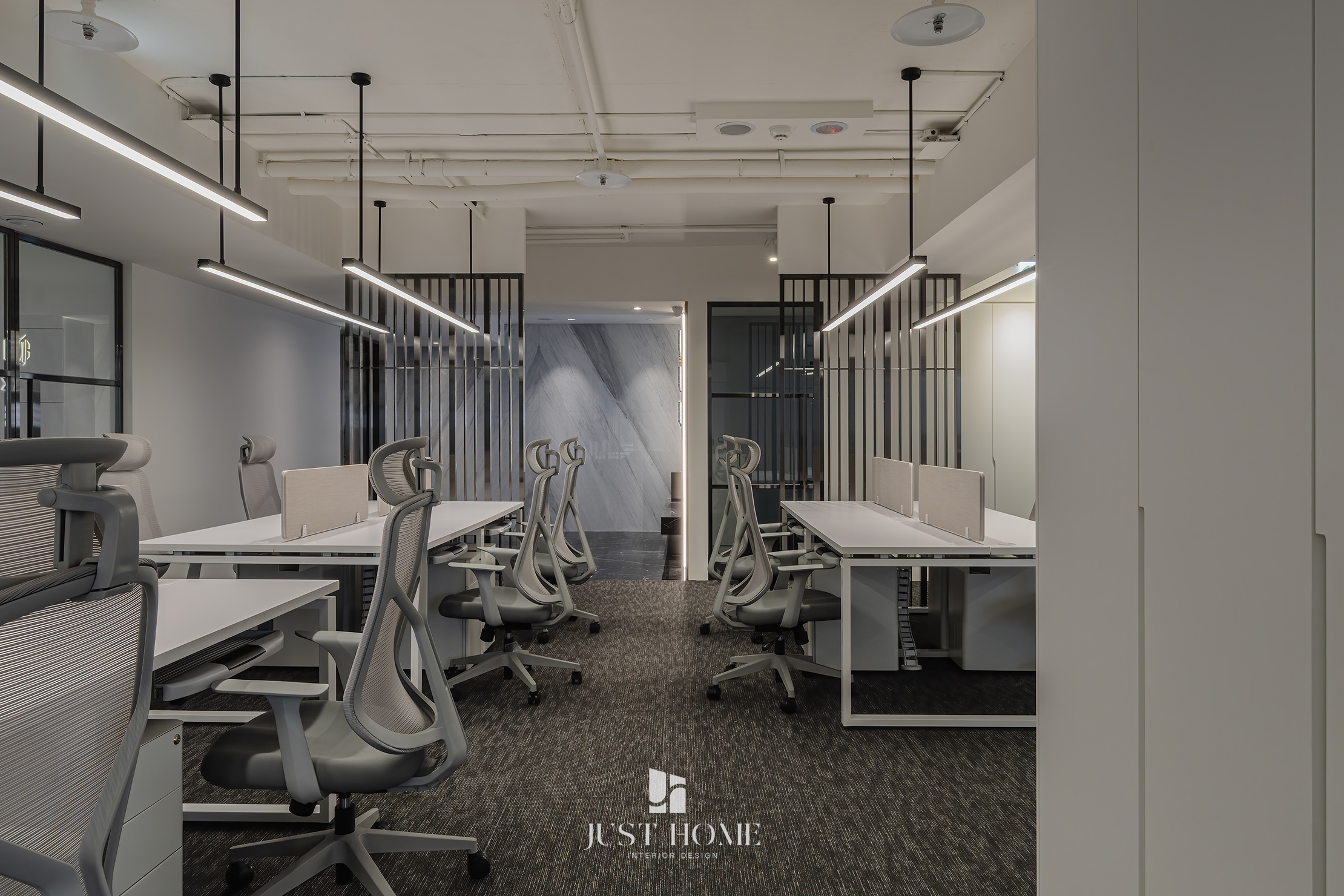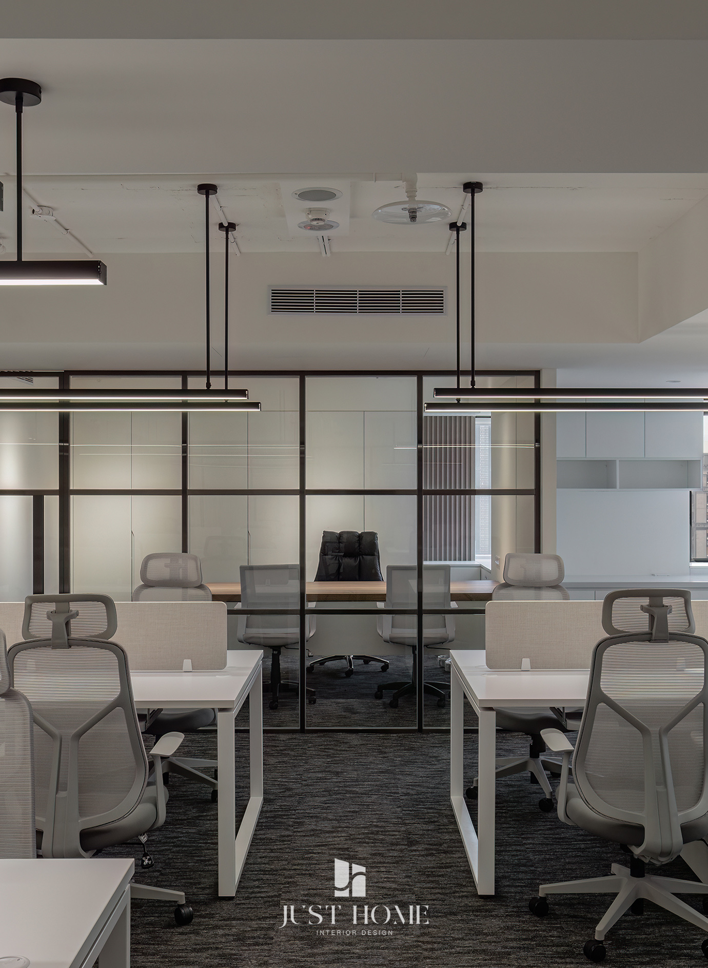 整體以灰階與玻璃元素搭配輕盈燈條,